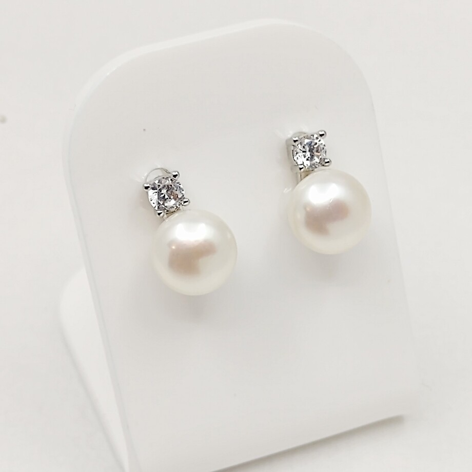 Bouton pearl and white topaz stud