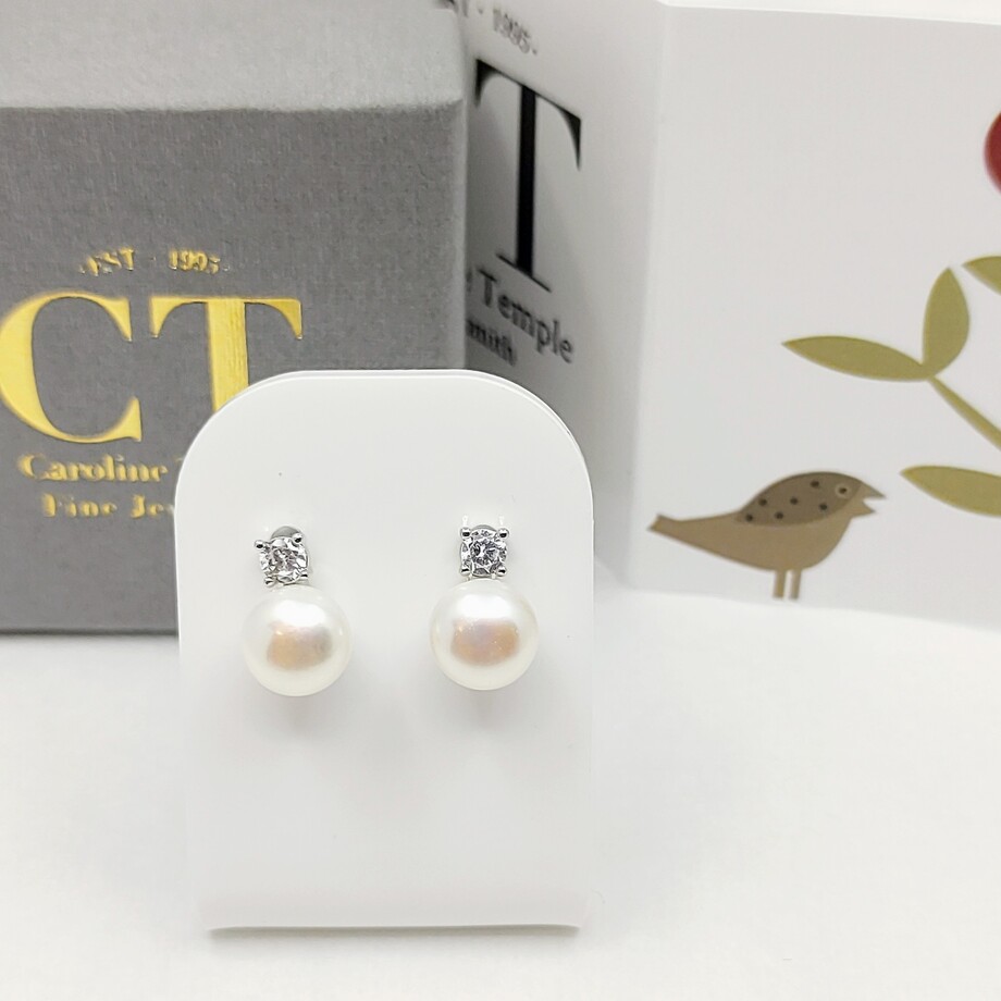 7-8mm bouton pearls with white topaz.