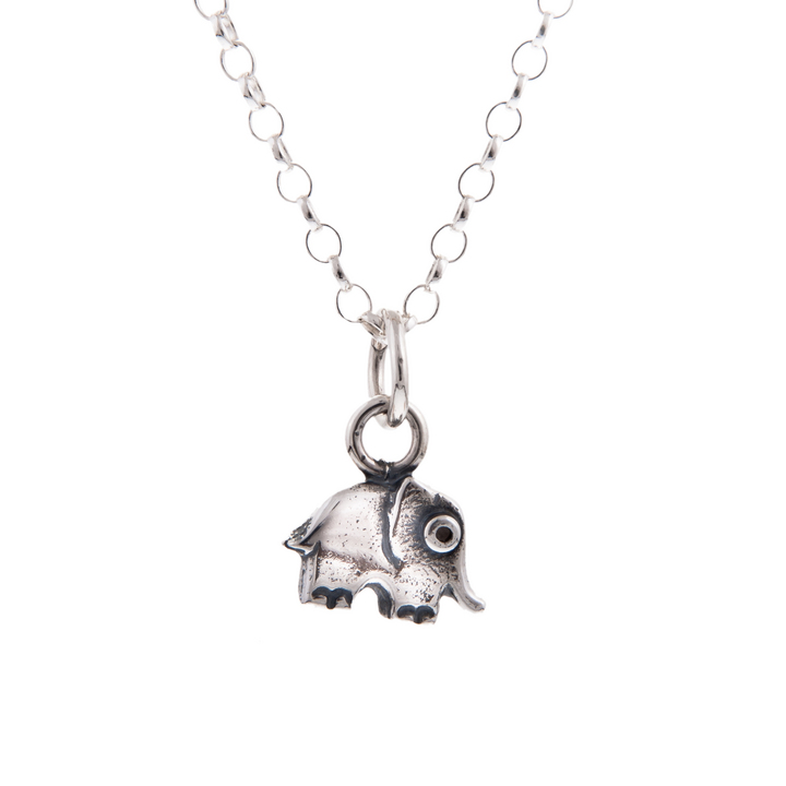 Sweet little elephant measures approx 1cm from tail to trunk. The pendant hangs from an 18in chain.